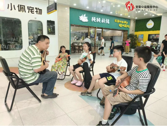 活动现场,气氛热烈而充满活力,背囊公益服务中心的工作人员设置了尤克里里、非遗口才、软笔书法、马克笔绘画等精彩课程,邀请到浙江歌舞剧院、浙江省尤克里里专业委员会、闻莺书画院的专业老师们进行现场指导,让青少年们在实践的过程中不仅收获了乐趣,更提升了对美的理解和认知。
