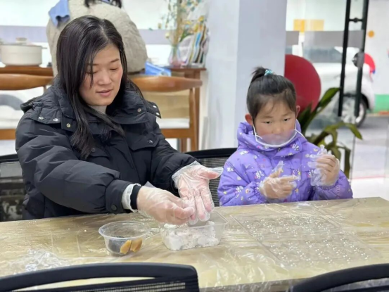 在志愿者的带领下,孩子们与家长们围坐在一起,和面、掐馅,共同感受家的温馨和团圆的幸福。猜灯谜环节,孩子们或独自思考或向家长请教,沉浸在知识的海洋中,共同感受传统文化的魅力。此外,志愿者们为参加活动的家庭准备了精美的礼品,让每个家庭都能满载而归。